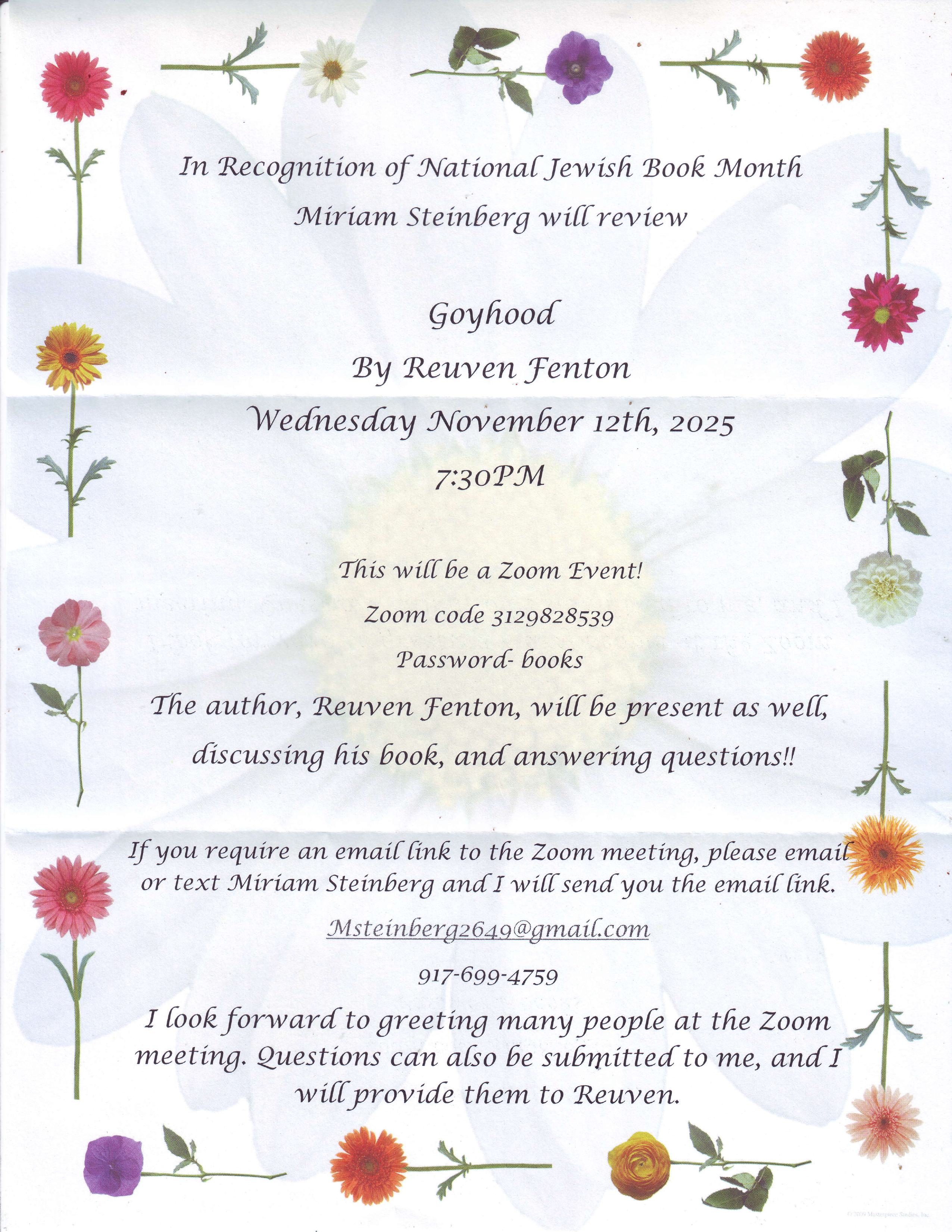 In Recognition of National Jewish Book Month