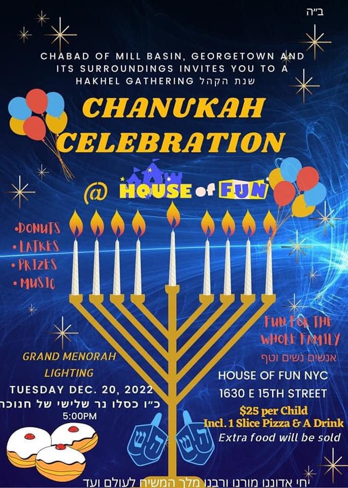 RSVP required: jewishmillbasin.com/chanukah; 347-987-0083