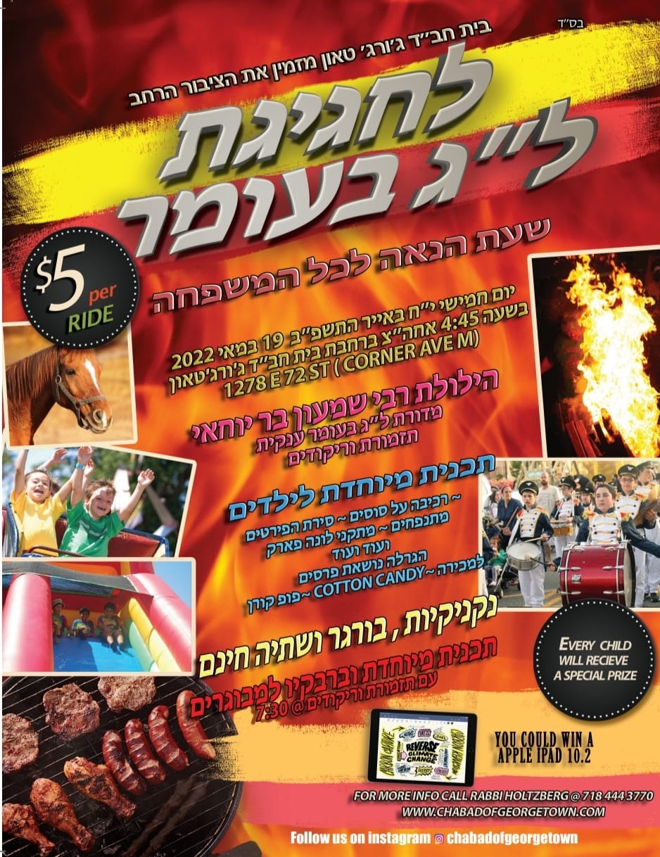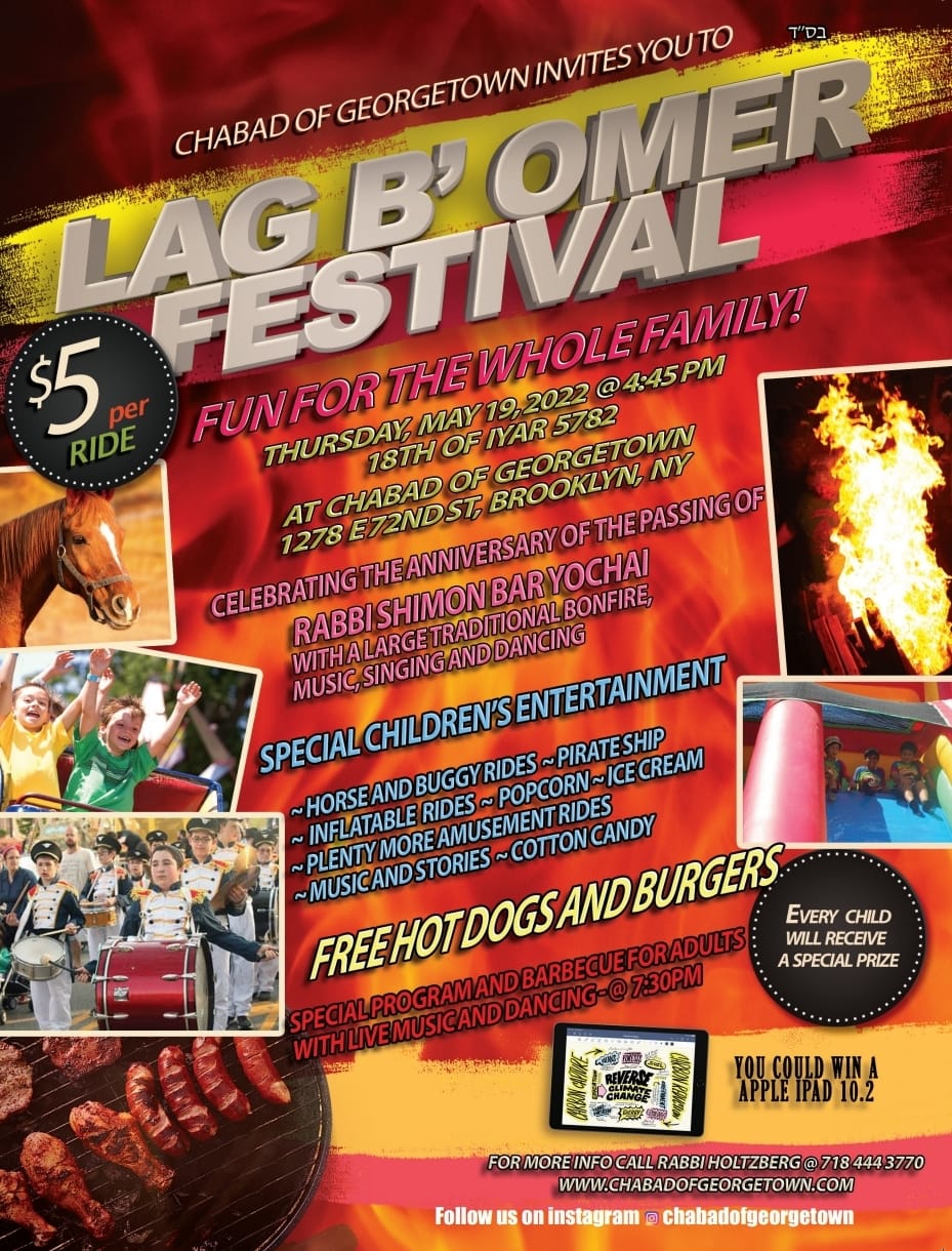 Thursday, May 19, 2022, 4:45pm Lag B’Omer Festival Chabad Of Georgetown