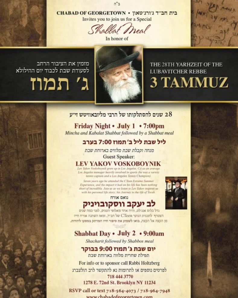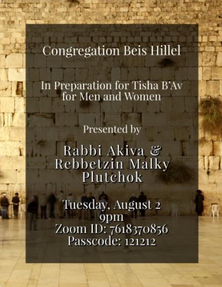 Shabbat Day, July 2: 9 AM  Shacharit followed by Shabbos meal