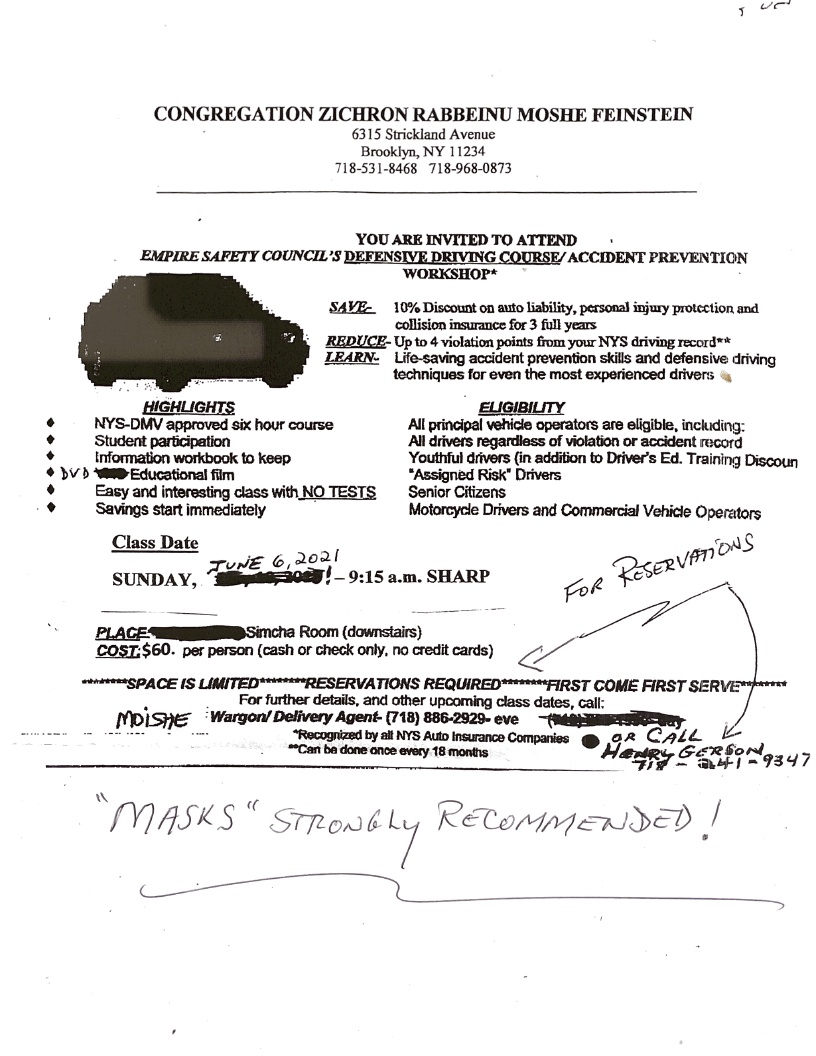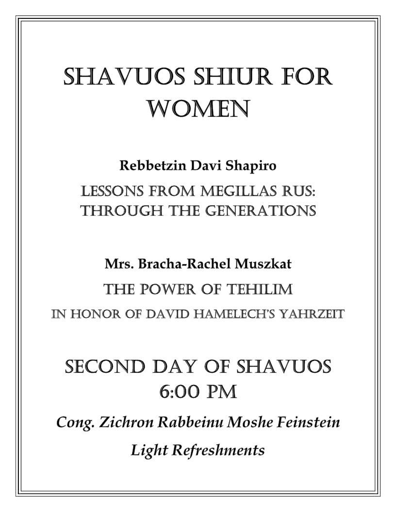 RSVP: 718-886-2929 or 718-241-9347 (Gerson)