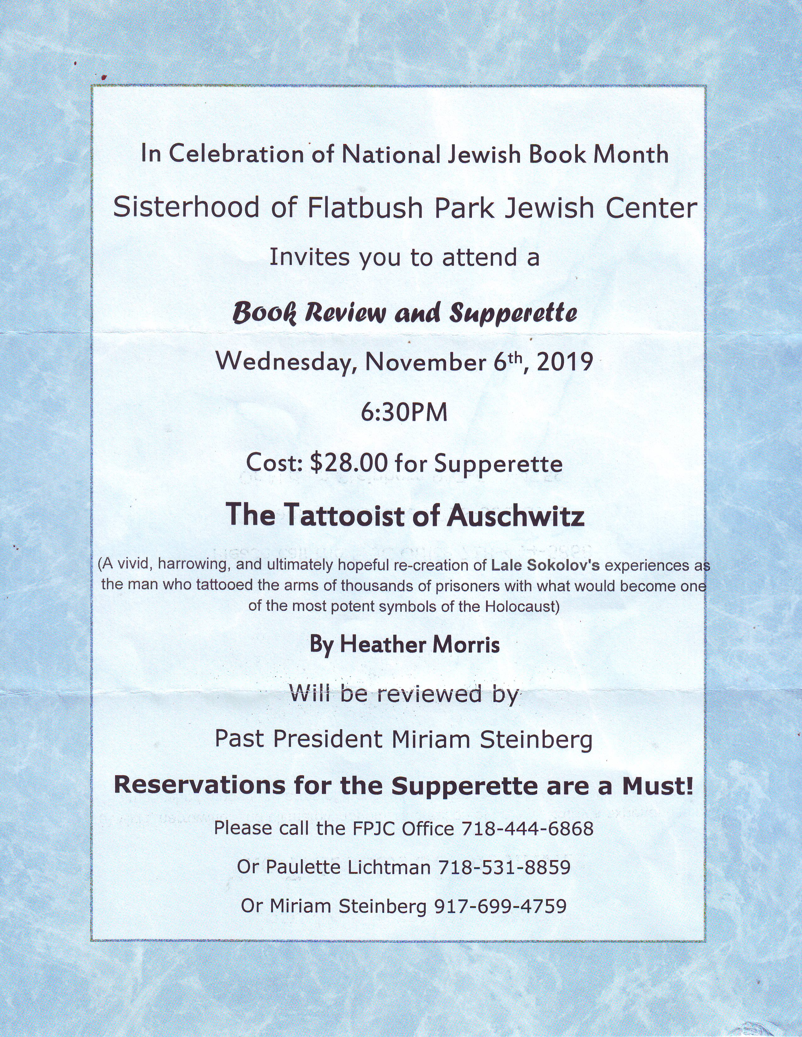 Miriam Steinberg will review: