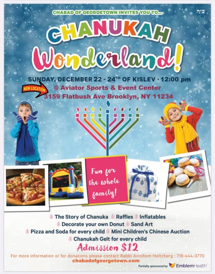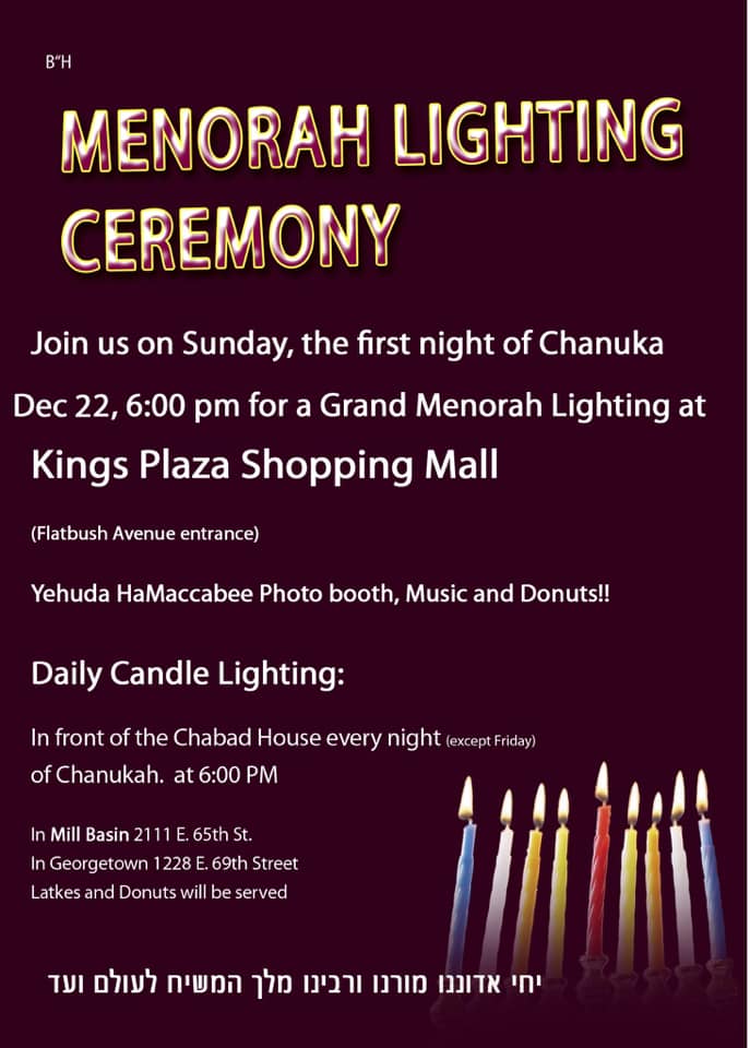 All other nights of Chanukah (except Fri.) at 6 PM at