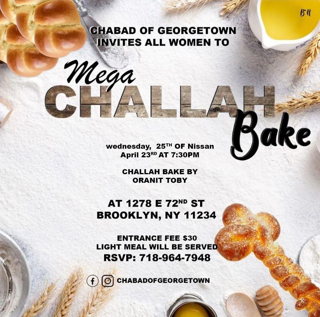 Wednesday, April 23, 2025, 7:30pm Mega Challah Bake Chabad Of Georgetown