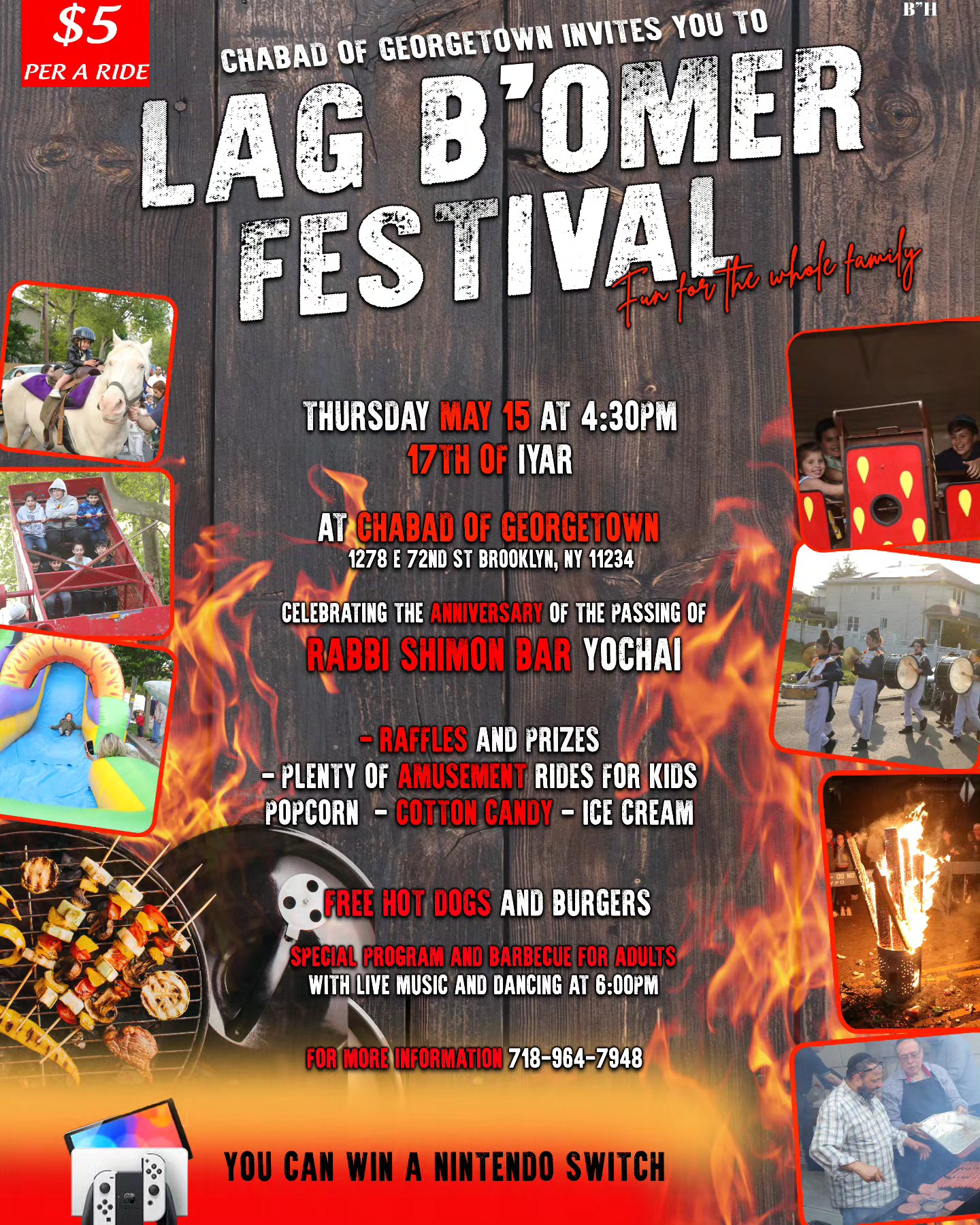 Thursday, May 15, 2025, 4:30pm Lag B’Omer Festival Chabad of Georgetown