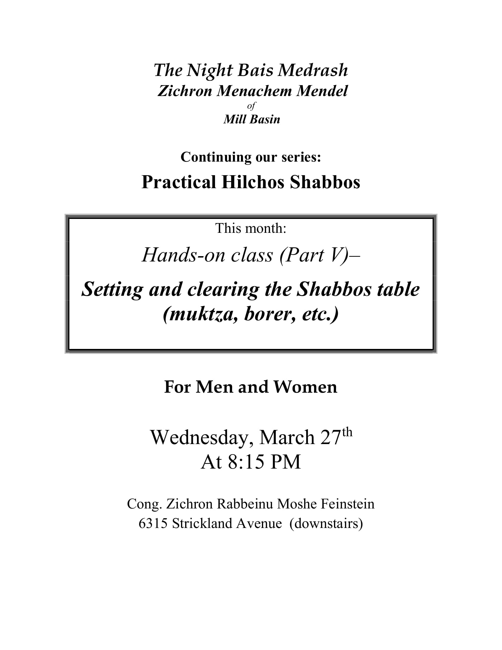 Setting and clearing the Shabbos Table (Mukzta, Borer, etc.)