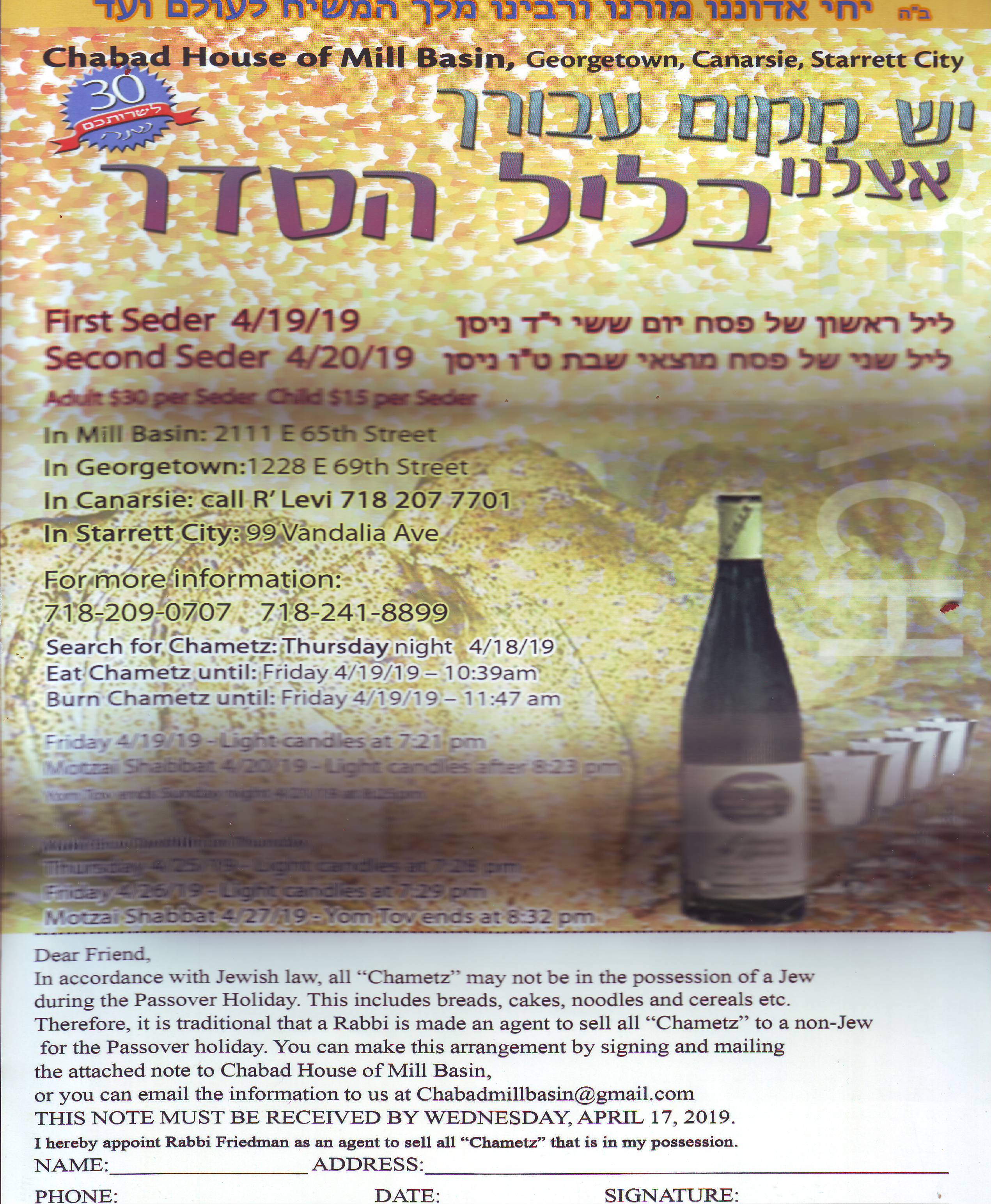 CHAMETZ GEMACH IN FLATBUSH! Between Purim and Pesach, donate your non-perishable, closed-package chametz with reliable hechshers. The Gemach halachically sells all chametz. After Pesach, everything is distributed to those in need. Please consider a monetary donation along with your food drop off in order to purchase supplies, extra food and to distribute to families. For more information, please call: 718.377.6361 or email yitzchak@relkin.com (please write “Chametz Gemach” in subject line). Active between Purim and Pesach. The Gemach is located at 1101 East 3rd Street (I/J). Please call first for more details and to arrange drop off times. All Chametz must be dropped off by two days before bedikas chametz. In nine years, the Gemach gathered and distributed 30,000 pounds of food.