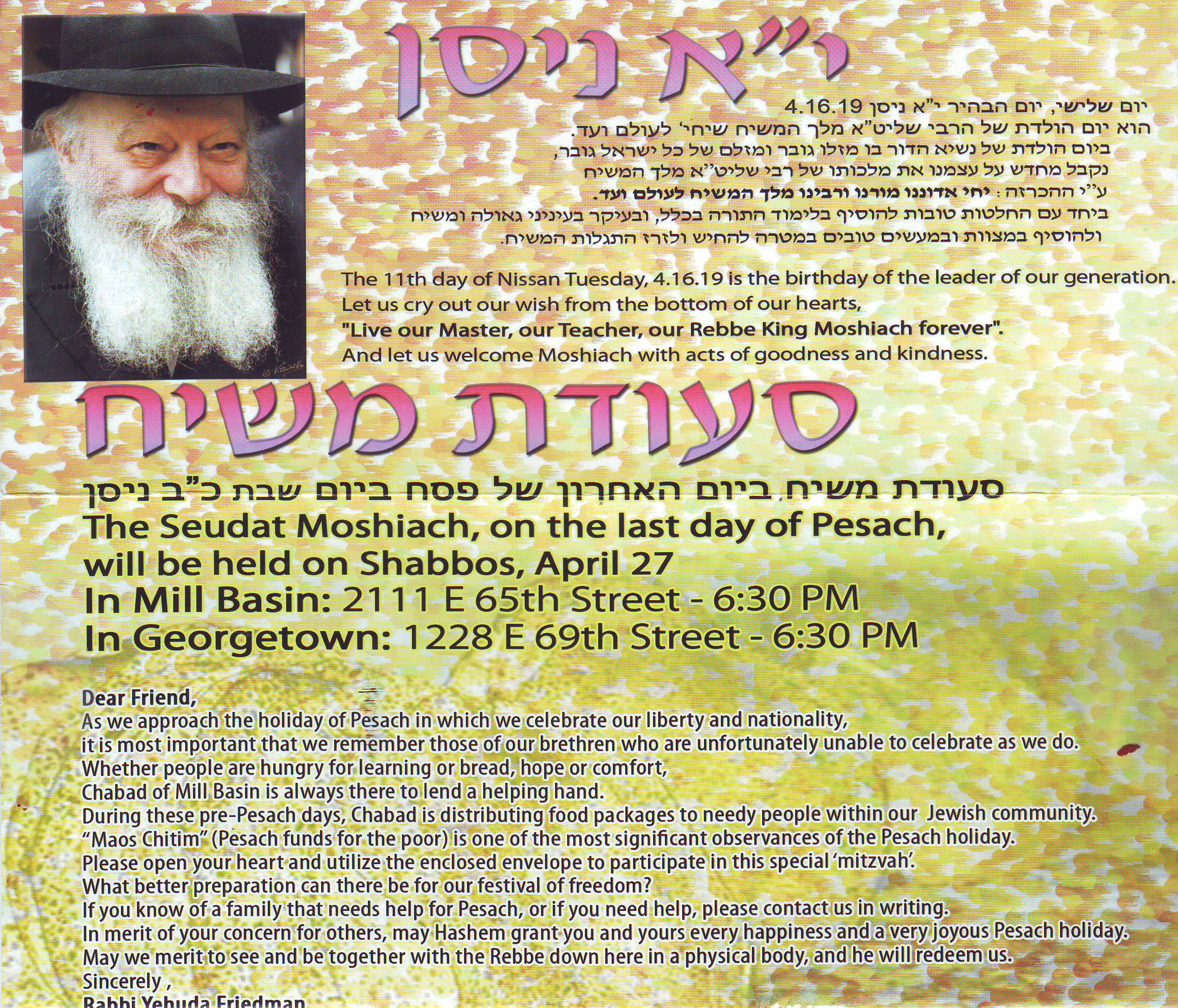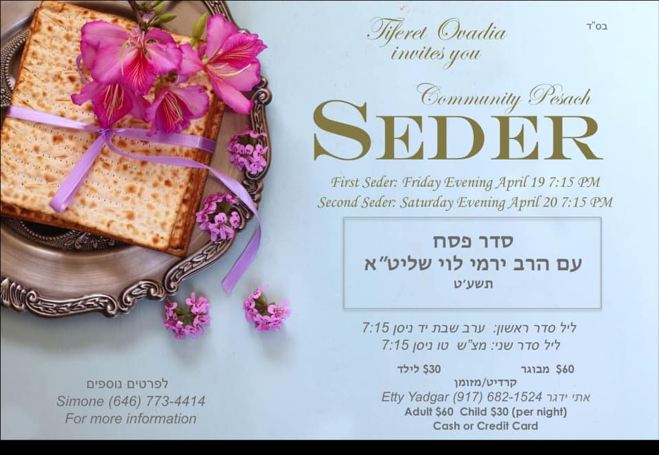 2nd Seder: Sat. Apr 20, 7:15 PM