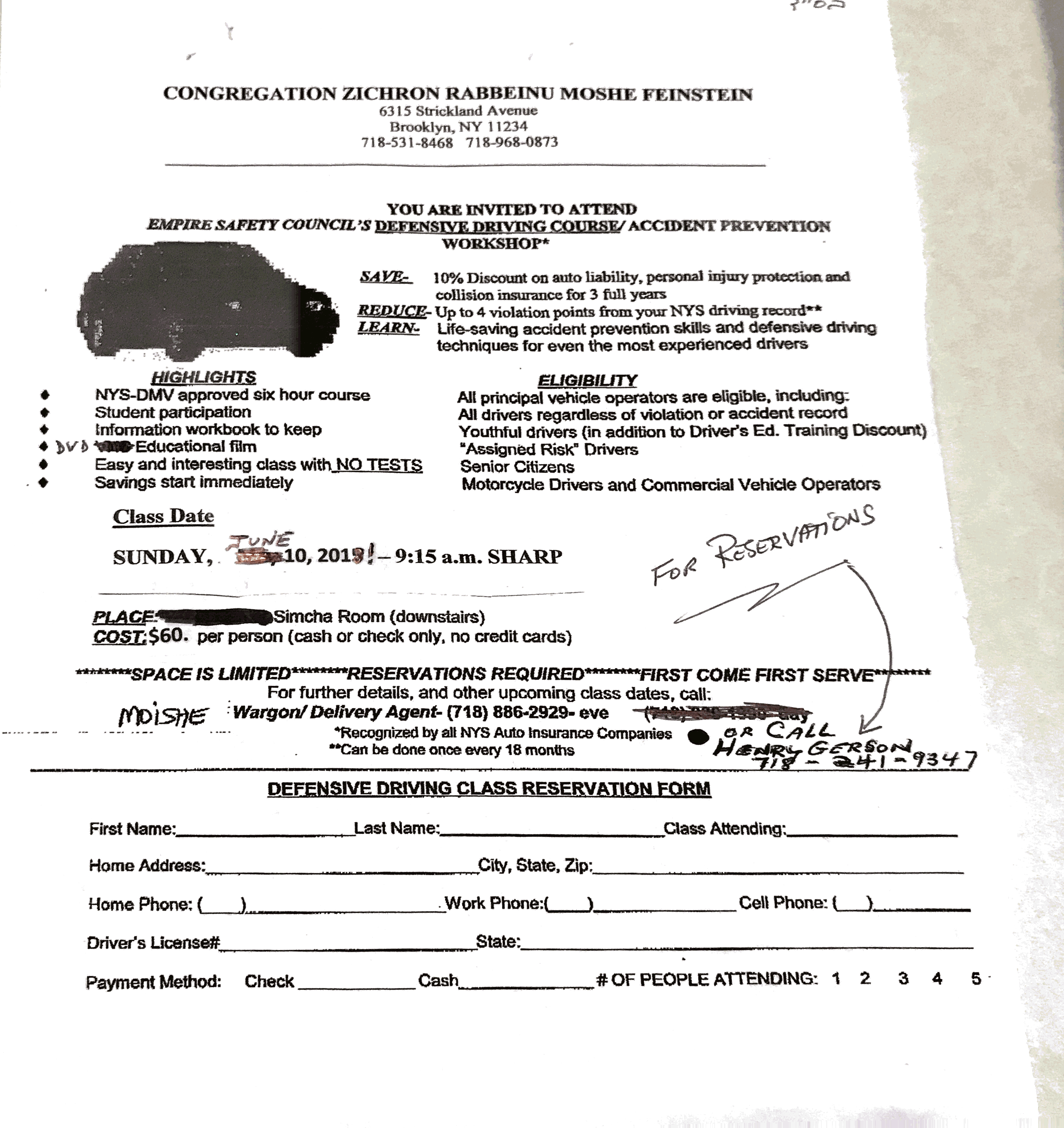 Location: Congregation Zichron Rabbeinu Moshe Feinstein, downstairs