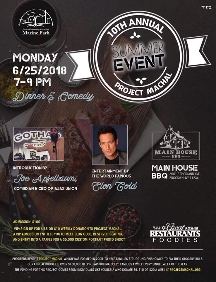 Introduction by Joe Apfelbaum, Entertainment by Elon Gold.