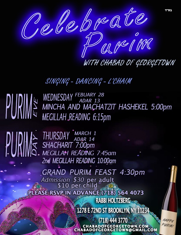 Chabad House of Mill Basin         6:15 PM   Food, Drinks, L’Chaim!