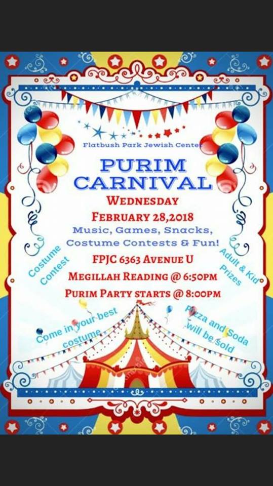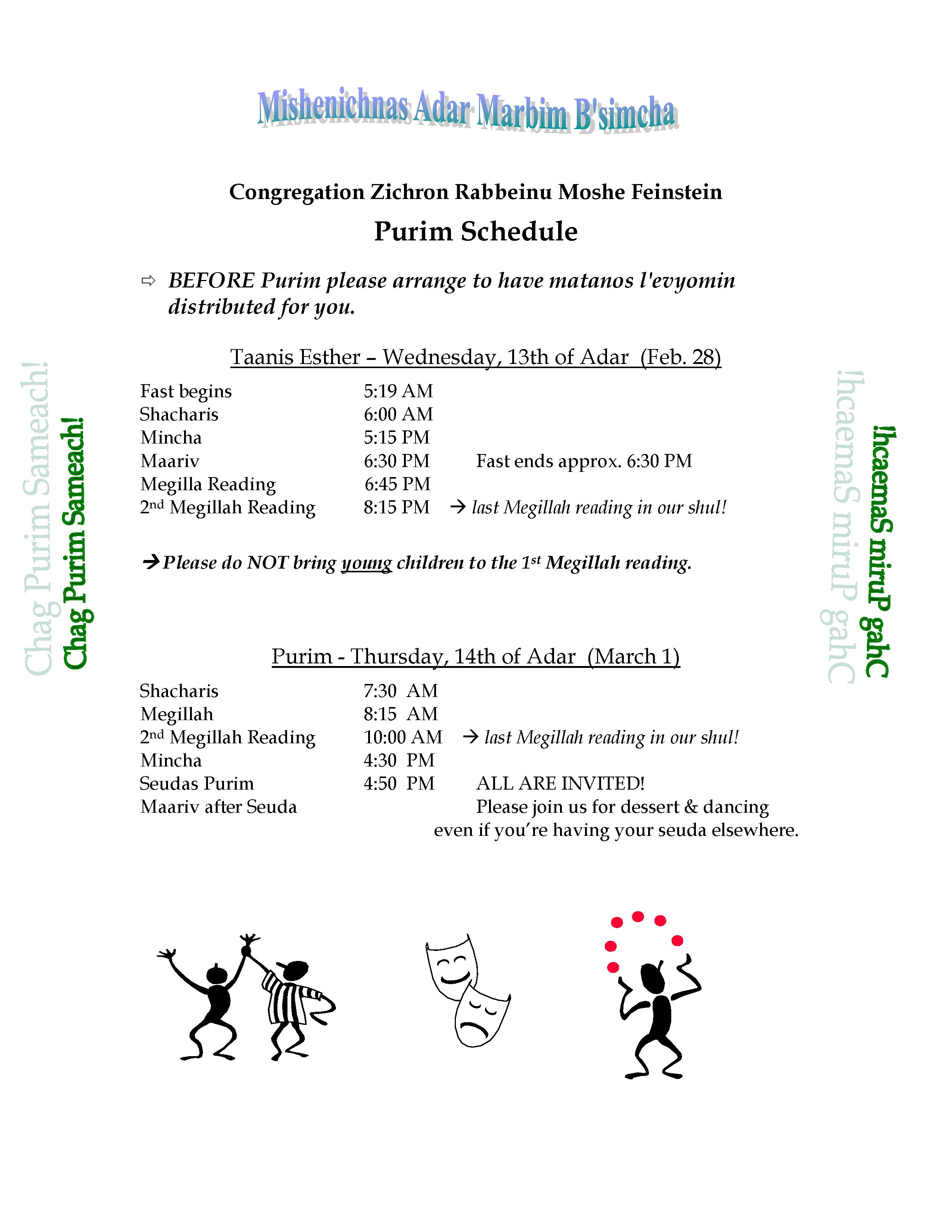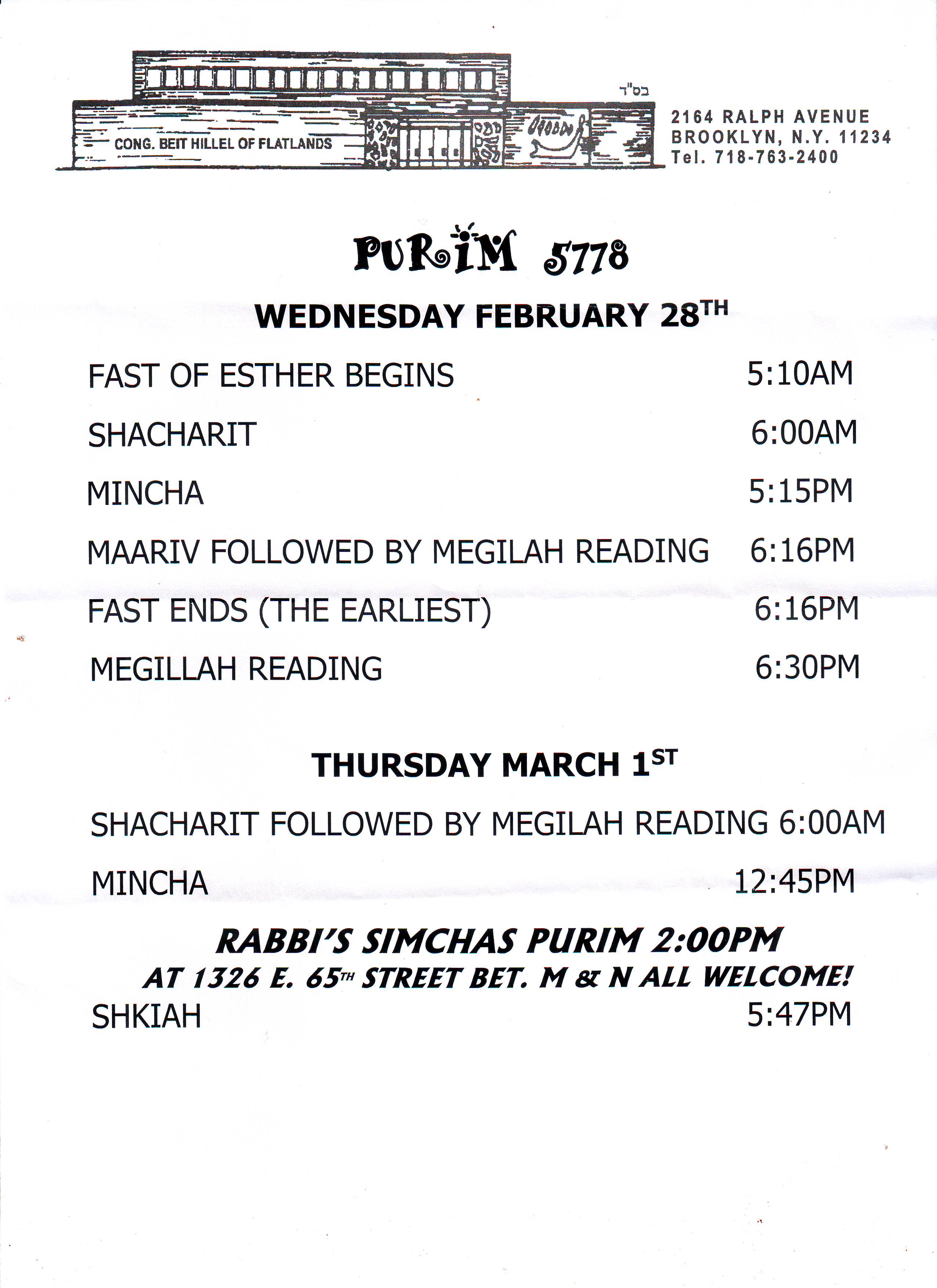 Wednesday, February 28, 2018 Purim Eve Schedules