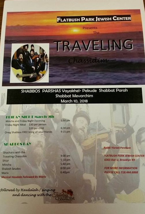 Monday, March 19, 2018, 8:30pm Pre-Pesach Kumzitz Flatbush Park Jewish Center
