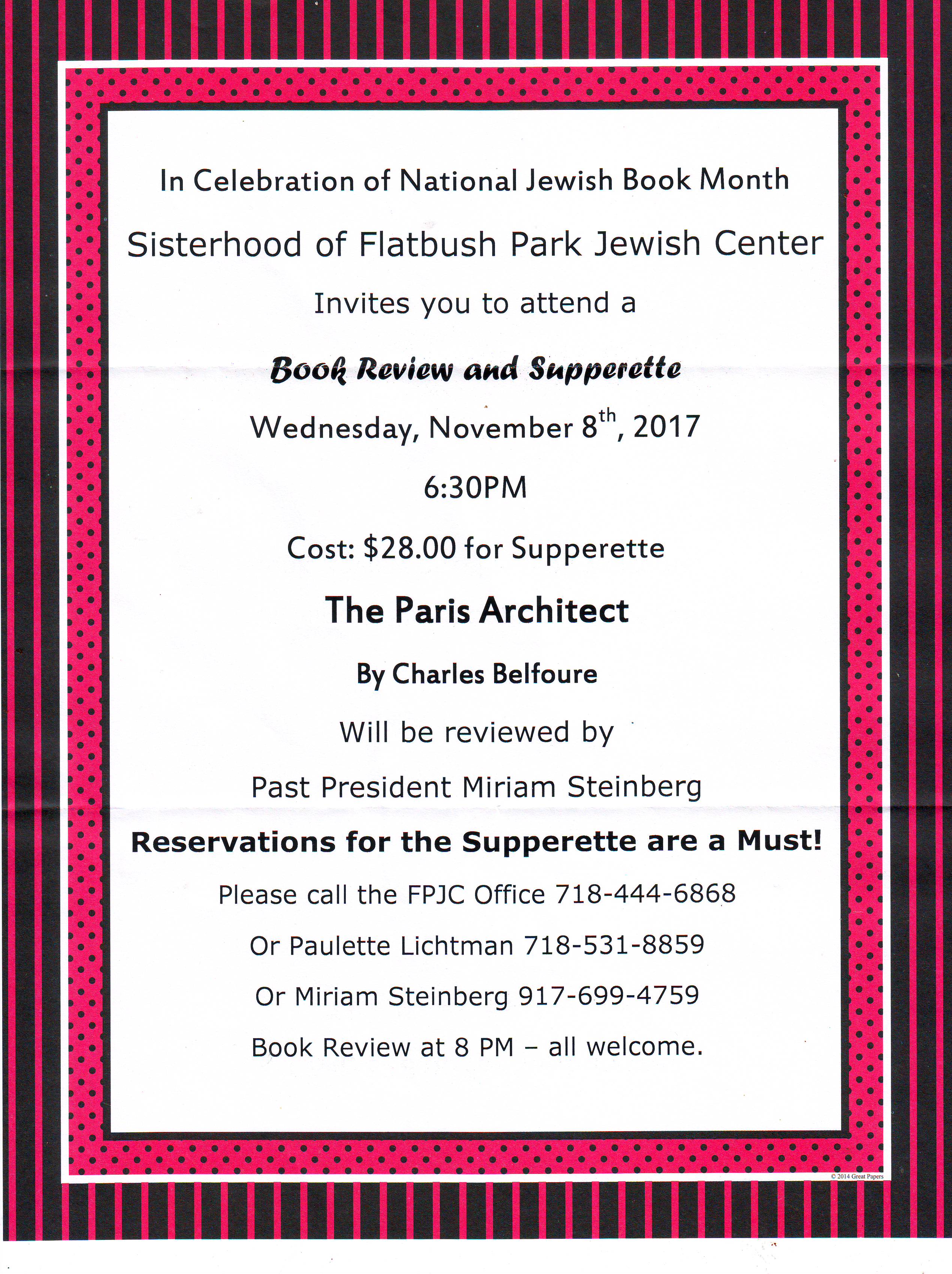 RSVP: Office: 718-444-6868; Paulette 718-531-8859; Miriam 917-699-4759