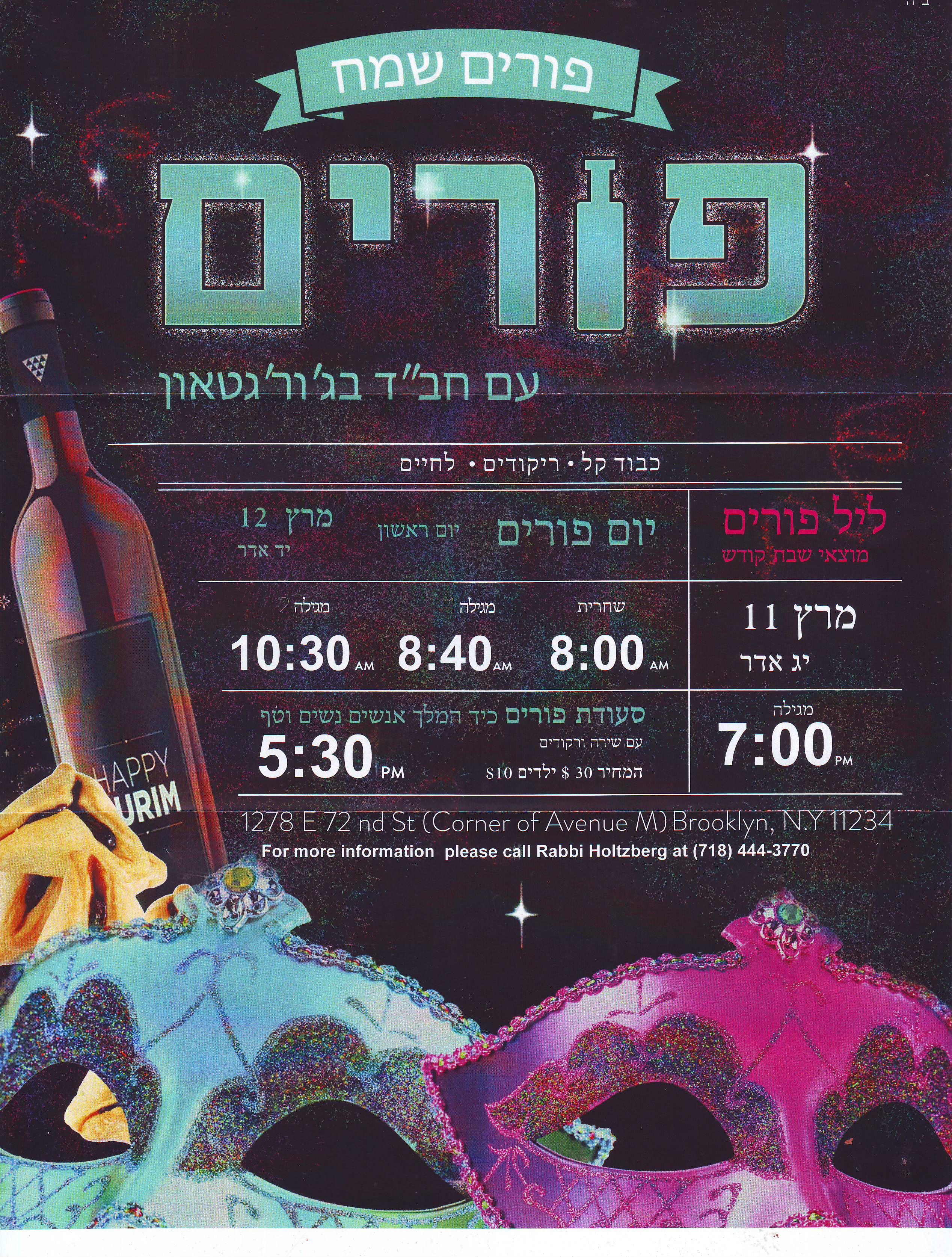 Please click on link for complete Purim schedule.