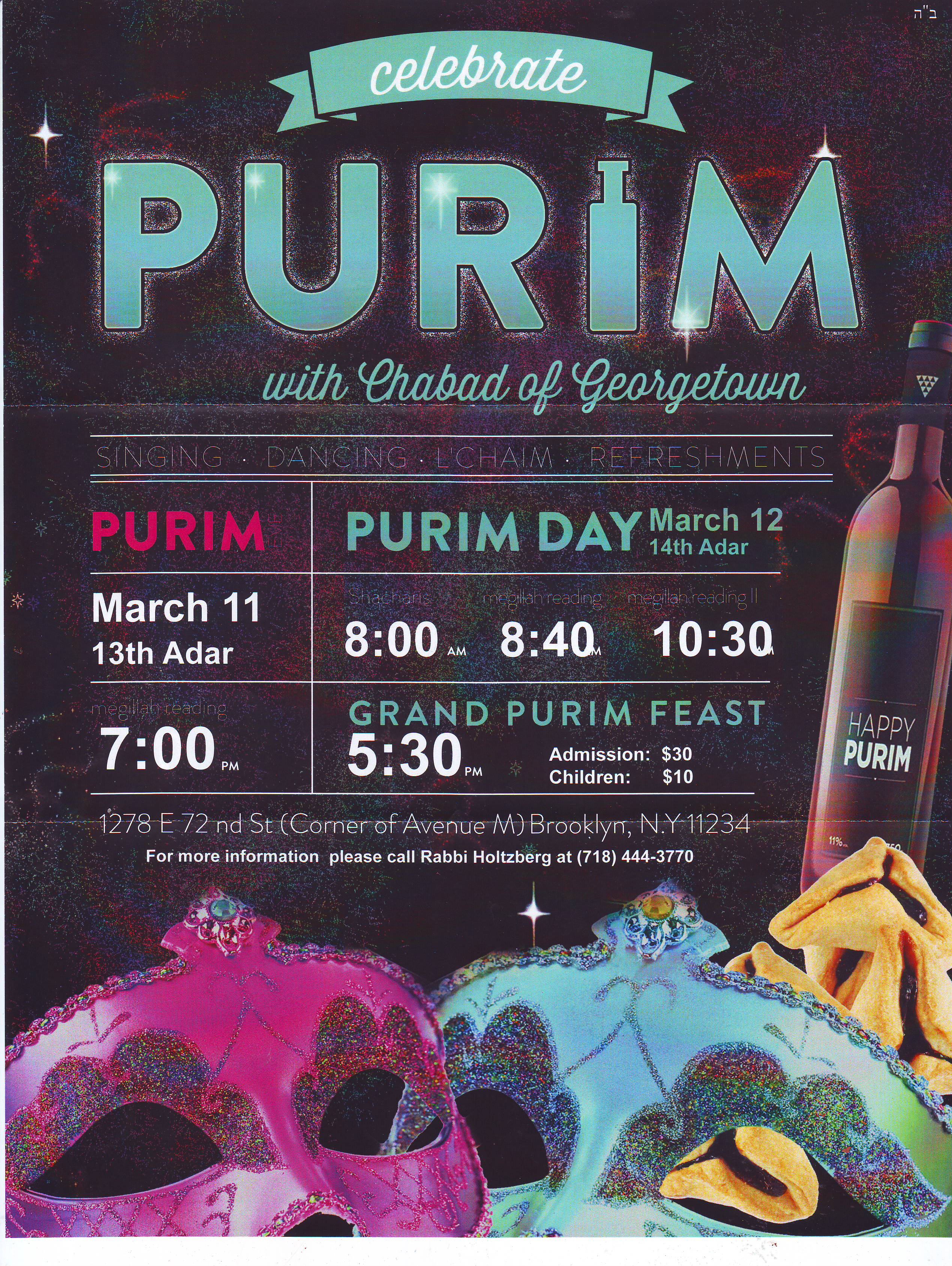 Sunday, March 12, 2017, 5:30pm Grand Purim Feast Chabad of Georgetown