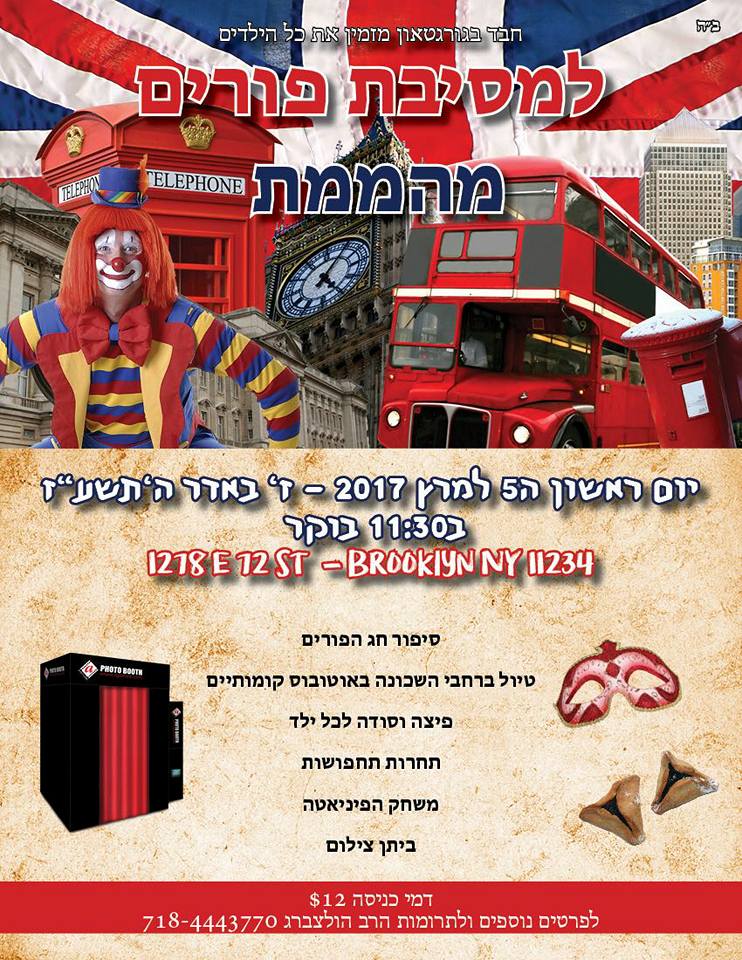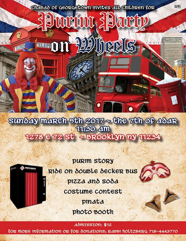 Sunday, March 5, 2017, 11:30am Purim Party on Wheels Chabad of Georgetown