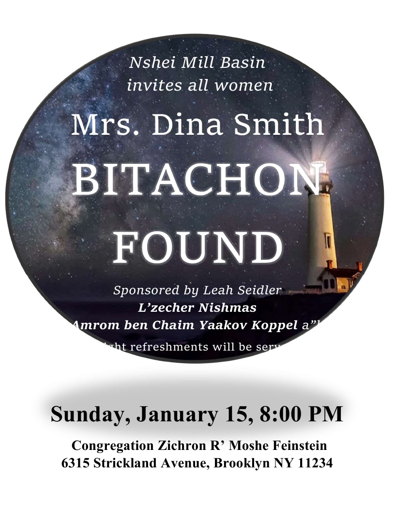 Mrs. Smith overcame a difficult childhood;  as an adult,she had Guillain-Barre Syndrome (an infection that causes complete paralysis) twice and recovered both times B”H.  She is a mesmerizing speaker and an inspiration not to be missed.