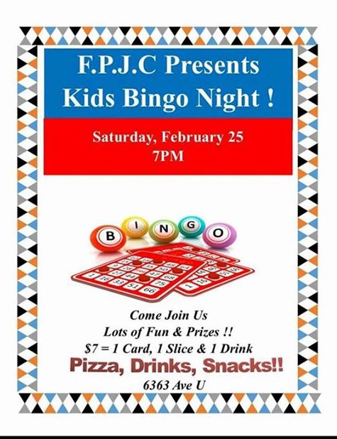 Saturday, February 25, 2017, 7:00pm Kids Bingo Night Flatbush Park Jewish Center