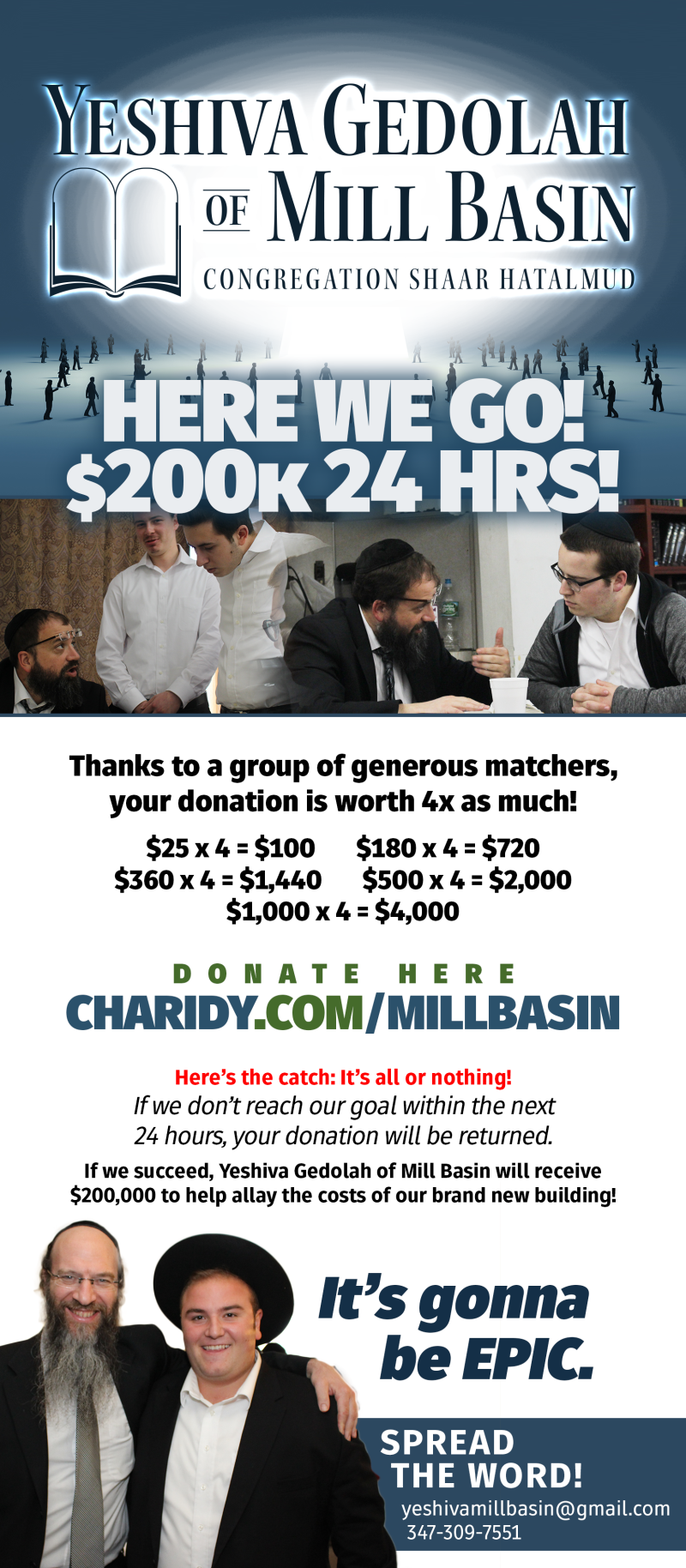 Wednesday, February 15, 2017, 2:00pm Yeshiva Gedolah of Mill Basin 24-Hour Fundraiser