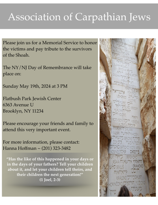 requests your presence at a Memorial Service to honor the victims and pay tribute to the survivors of the Shoah.