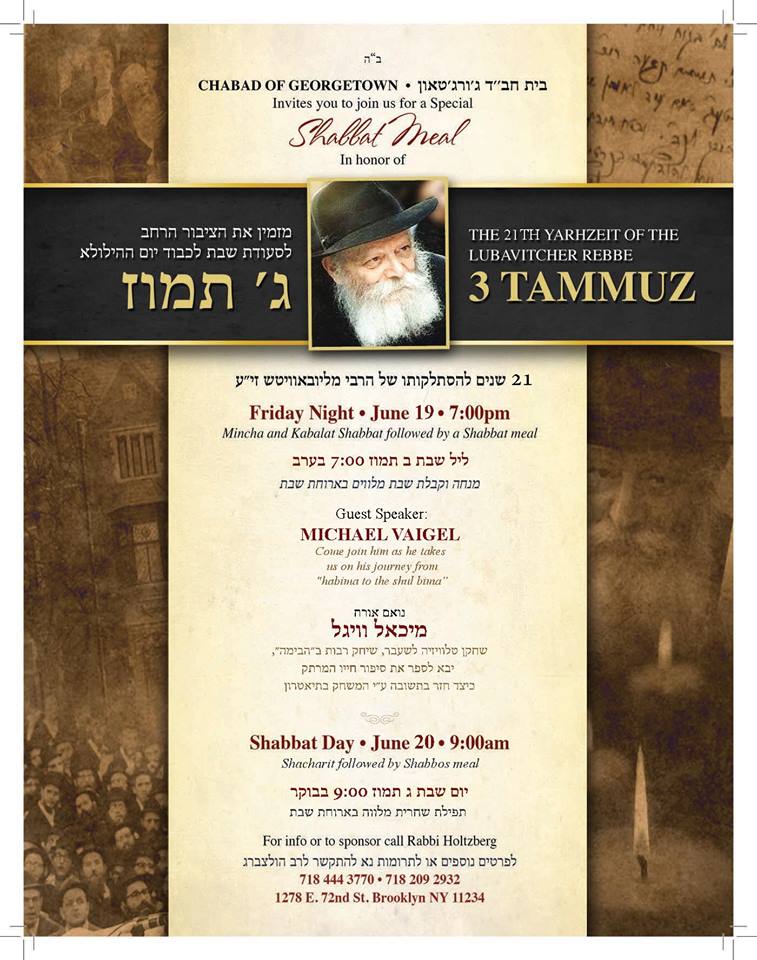 In honor of the 21st yahrzeit of the Lubavitcher Rebbe