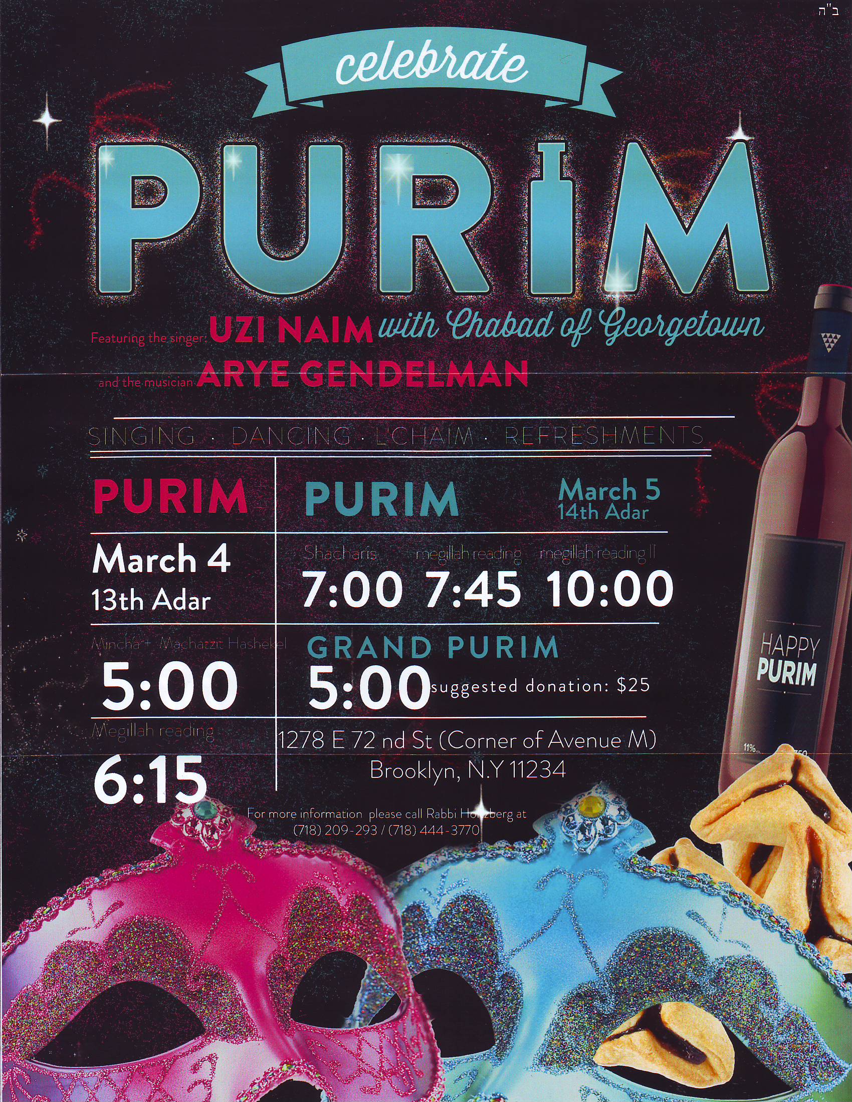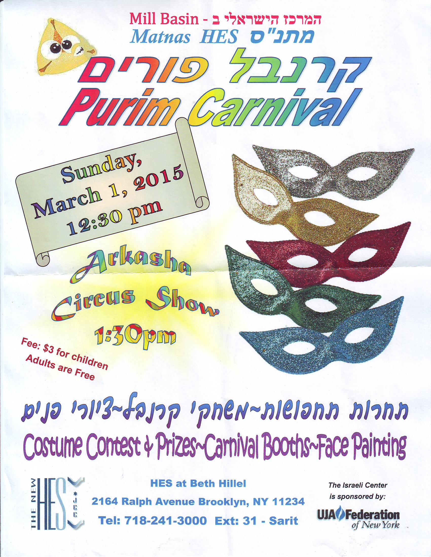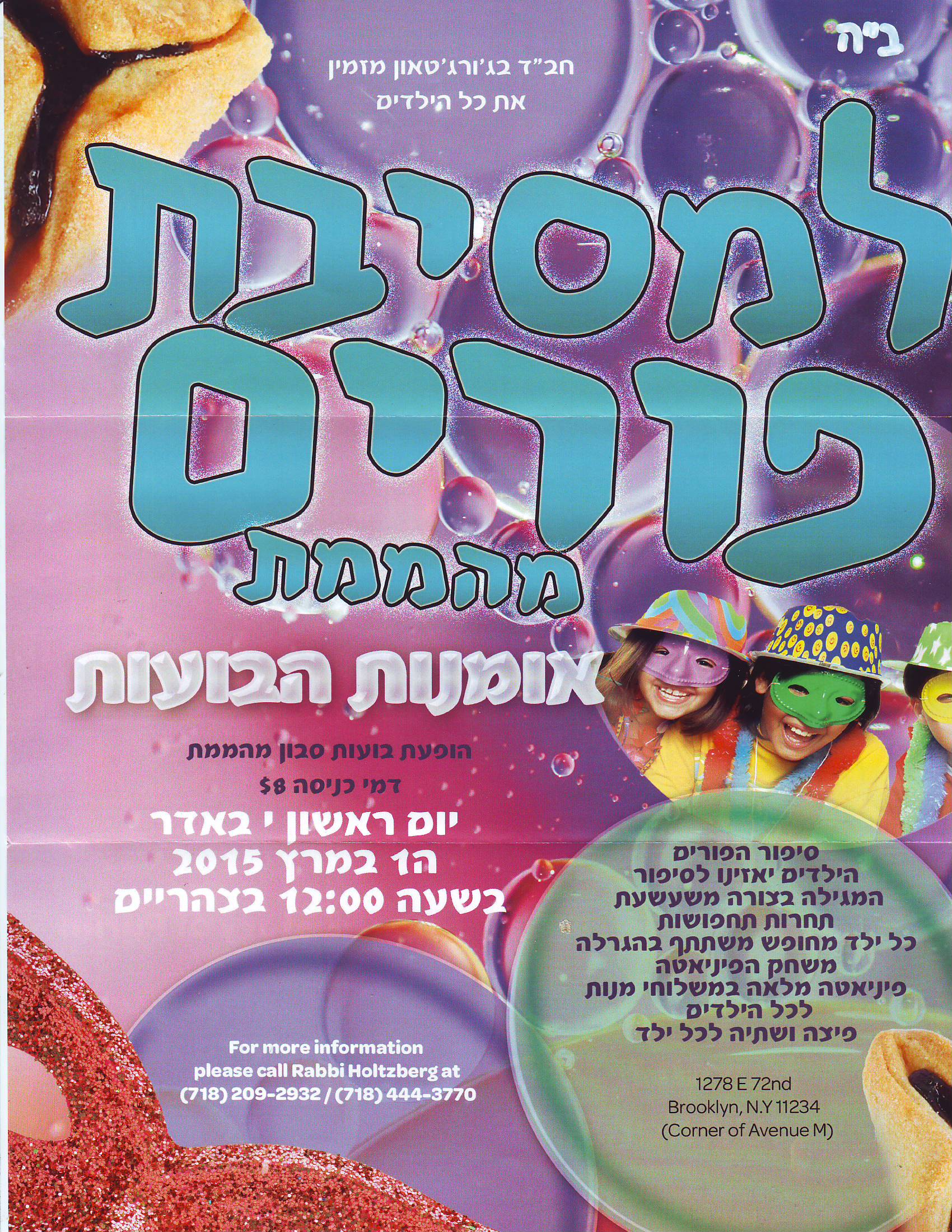 Music, clowns, booths, pizza, hamantashen, costume contest, and more!