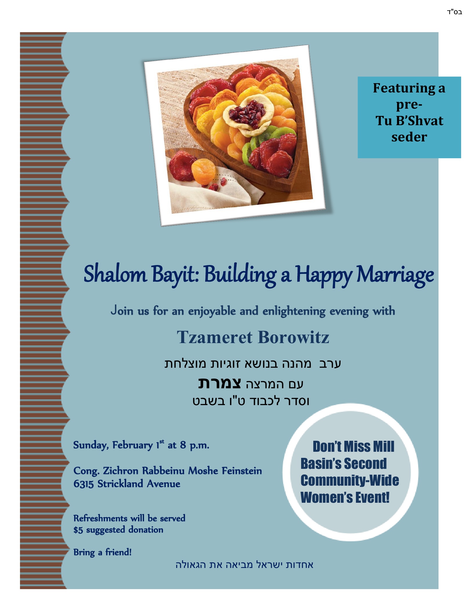 Tzameret Borowitz, well-known speaker and lecturer, will speak on
