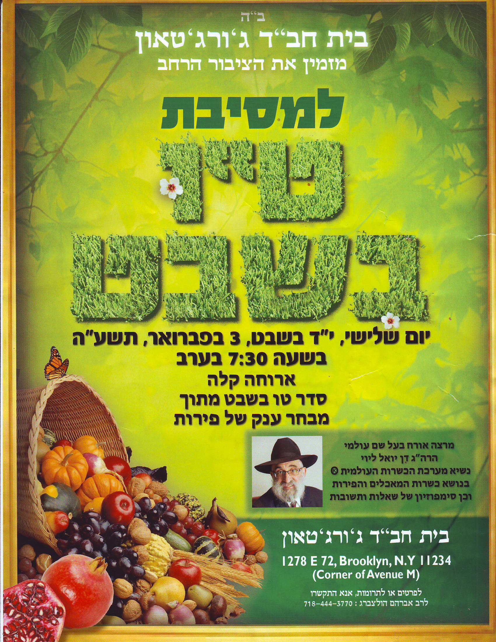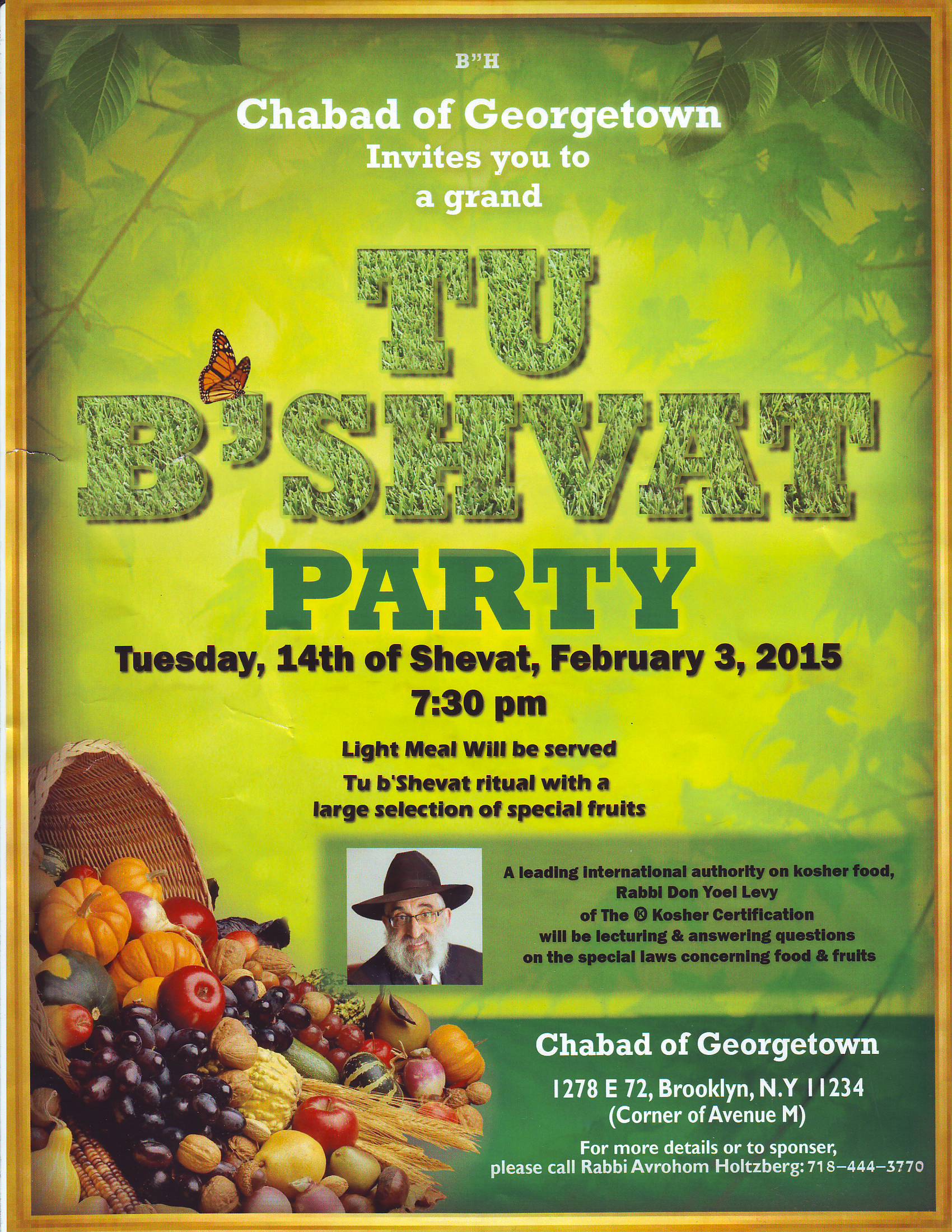 Tuesday, February 3, 2015, 7:30pm Tu B’Shvat Party Chabad Of Georgetown