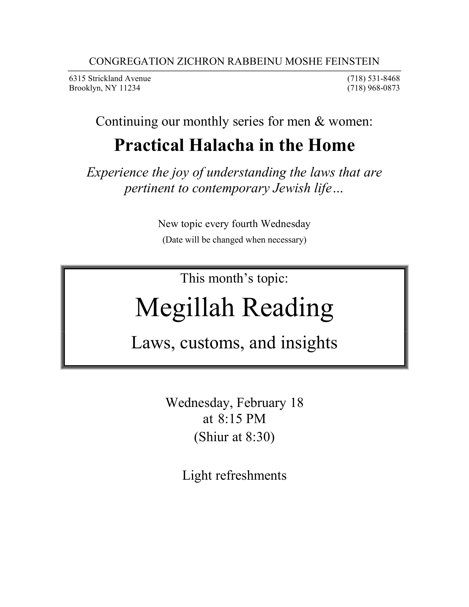 This month’s topic:  Megillah Reading:  Law, Customs, and Insights