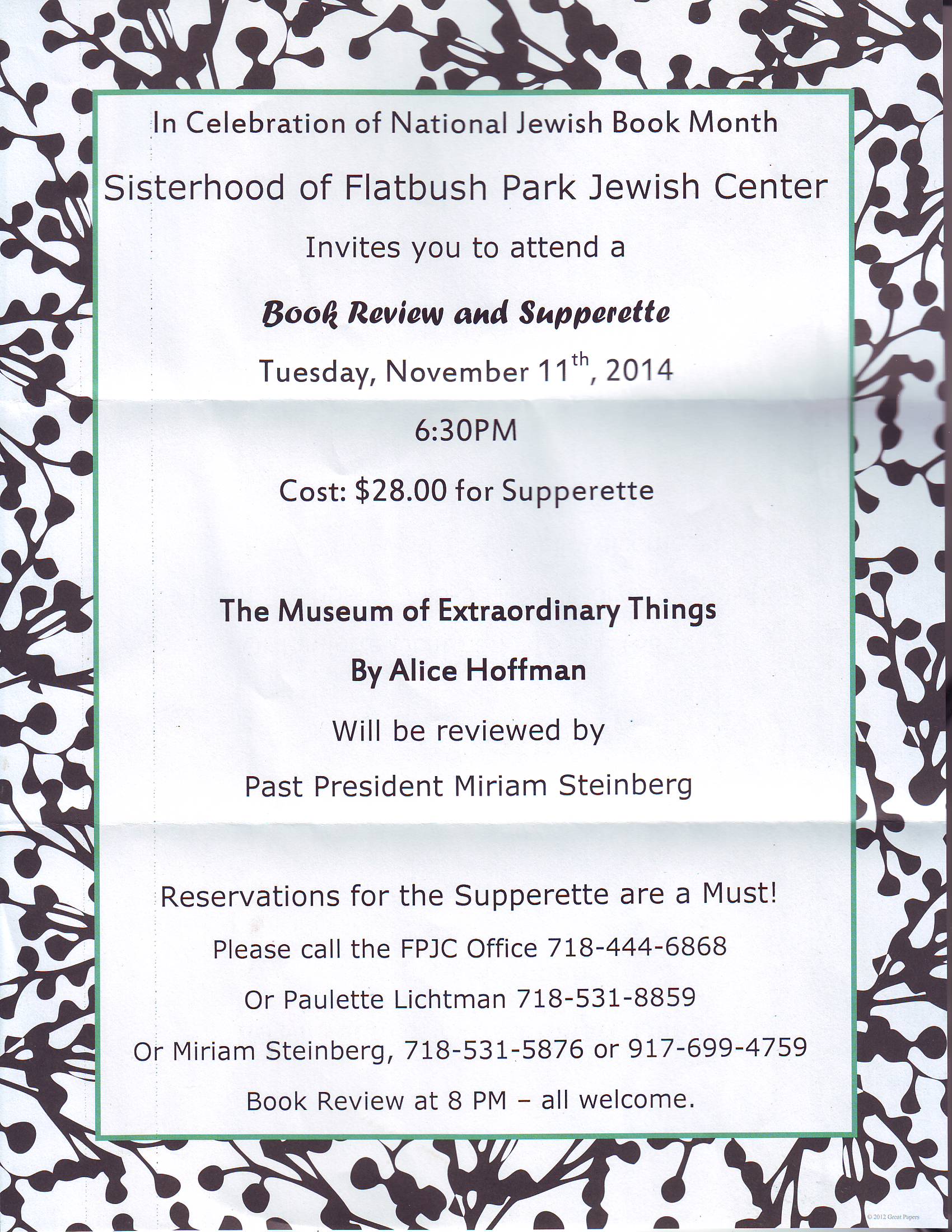 RSVP: 718-444-6868; Paulette at 718-531-8859; Miriam at 718-531-5876 or 917-699-4759