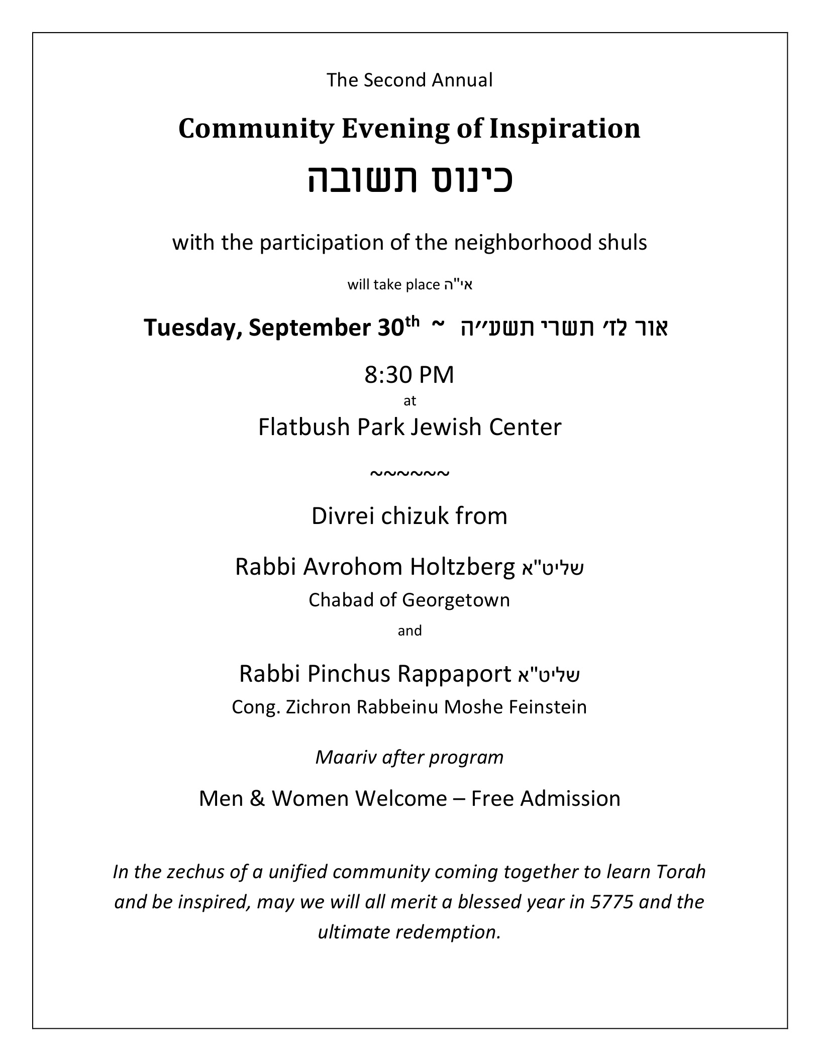 Rabbi Pinchus Rappaport, Rabbi of Cong. Zichron Rabbeinu Moshe Feinstein