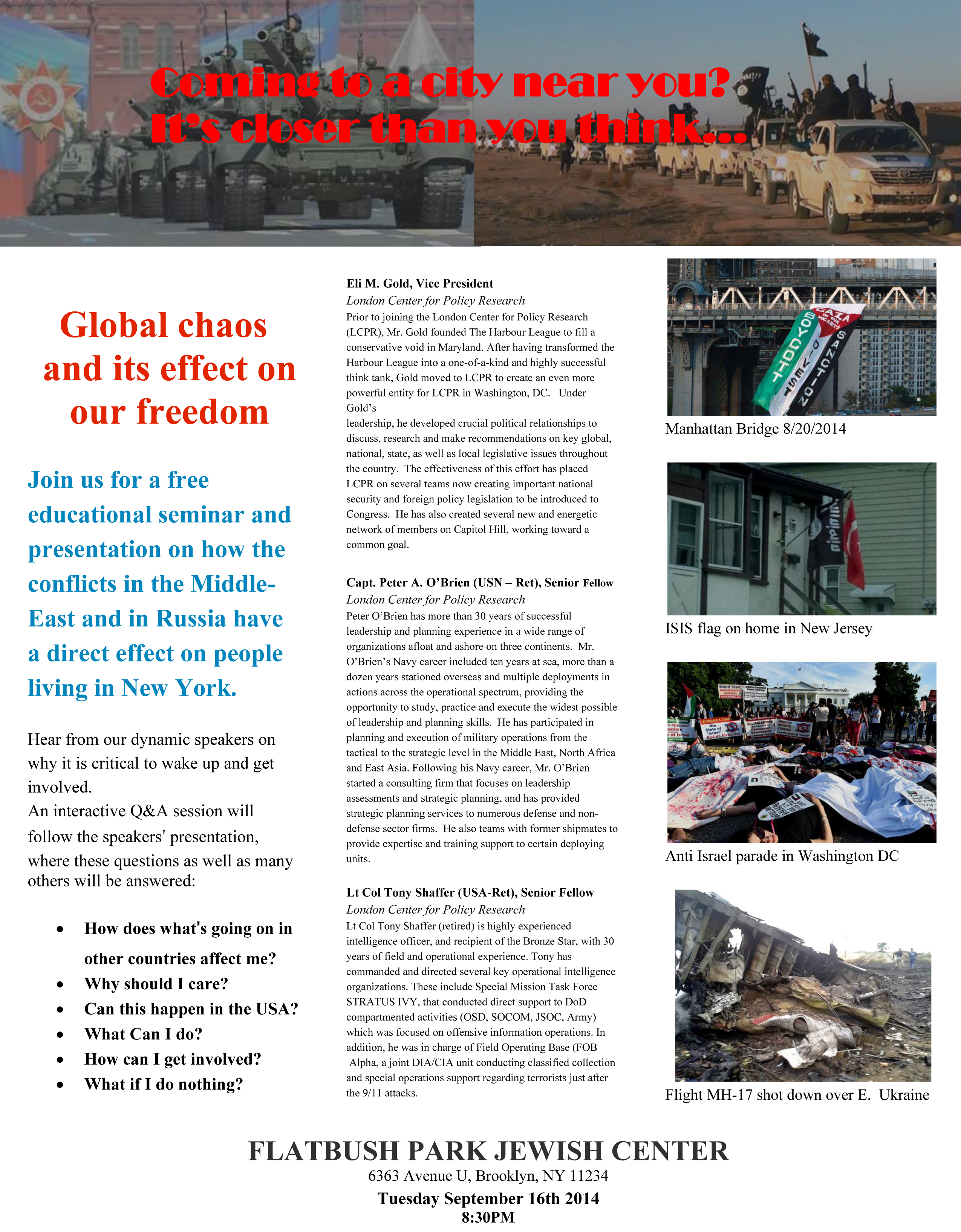 Our Guest Speakers are from the London Center for Policy Research, Wash., DC: