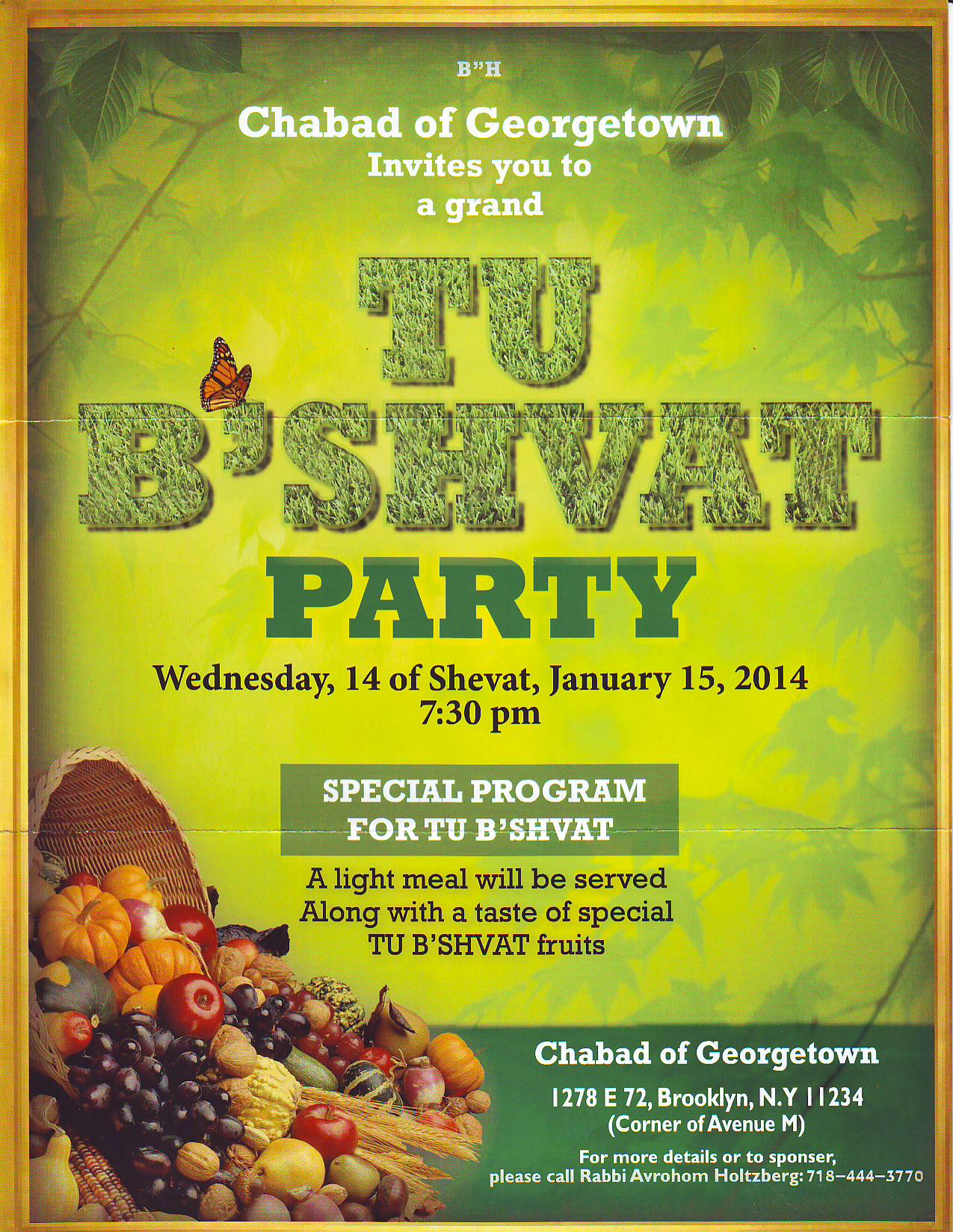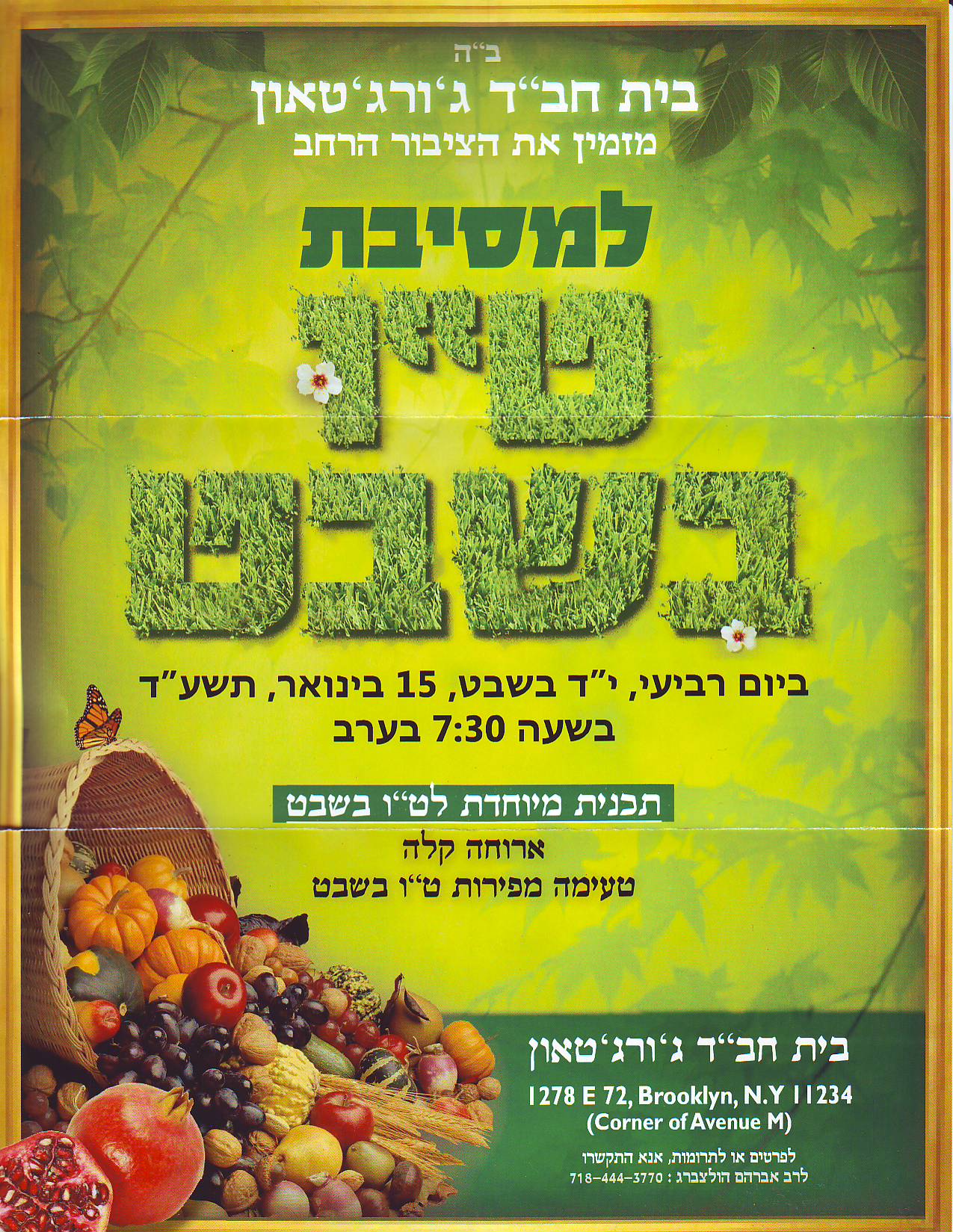A light meal will be served, along with a taste of special Tu B’Shvat fruits.