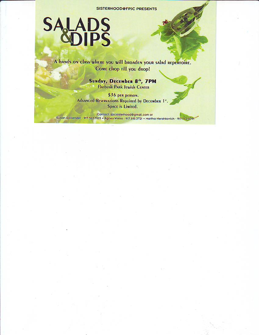 The Sisterhood of FPJC presents a hands on class to broaden your salad repertoire. Come chop till you drop!