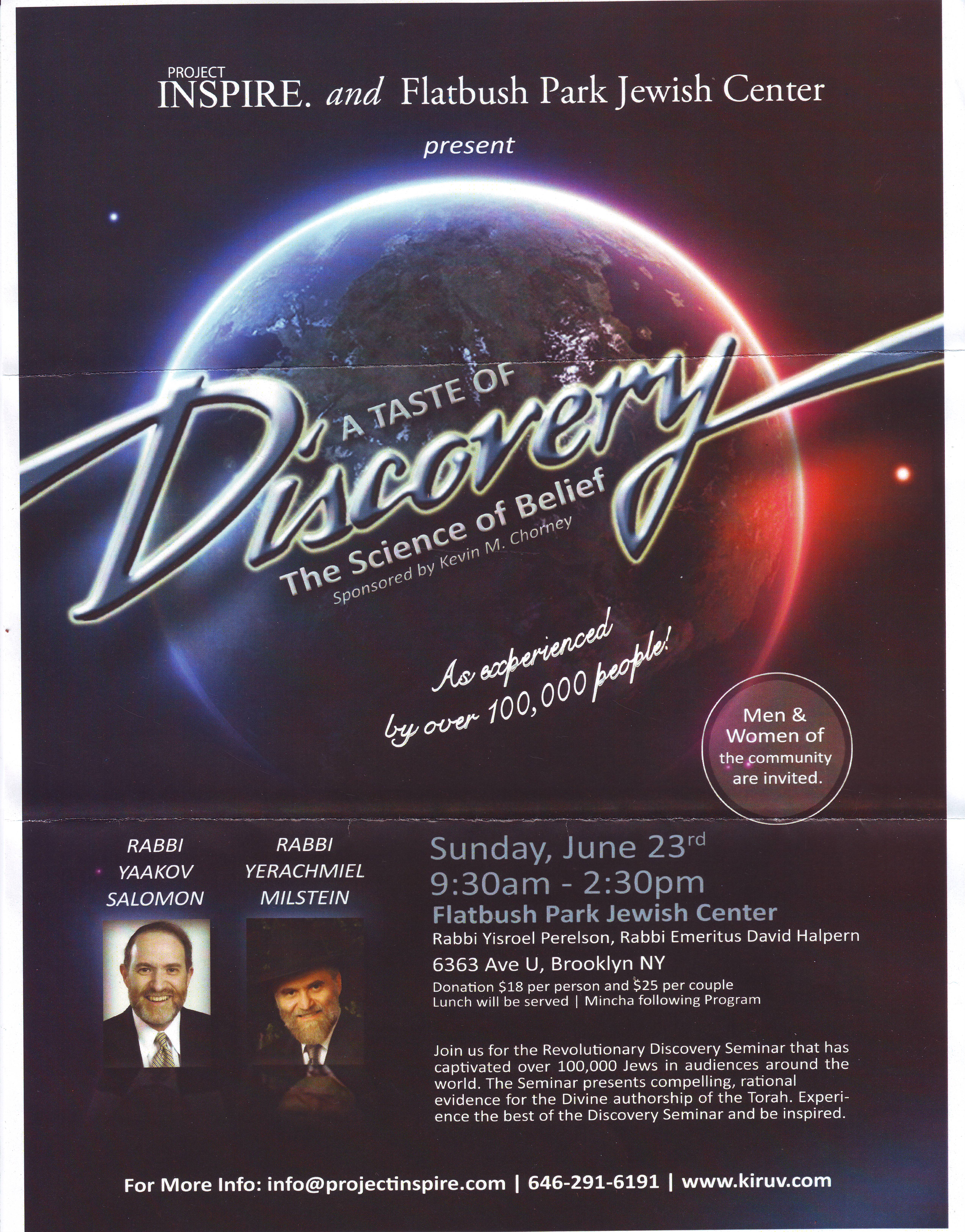 For more info: info@projectinspire.com; 646-291-6191; www.kiruv.com