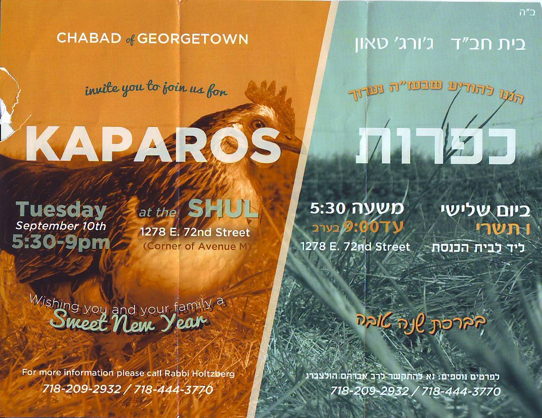 Kaparos at the Shul, 1278 E. 72nd St., corner Ave M